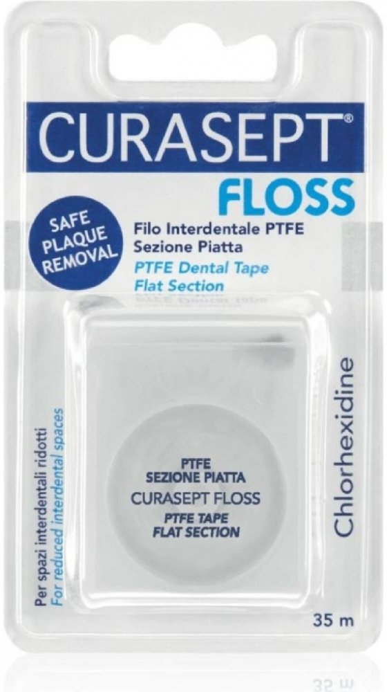 CURASEPT PTFE Tape je 35m dlouhá dentální teflonová páska. Díky teflonovému povrchu (PTFE) má optimální kluzné vlastnosti a snižuje tak riziko poranění, netřepí se. Impregnace Chlorhexidinem (CHX) zajišťuje lokální antibakteriální účinek. Díky praktickému balení ji můžete mít neustále při sobě a kdykoliv ji použít.
