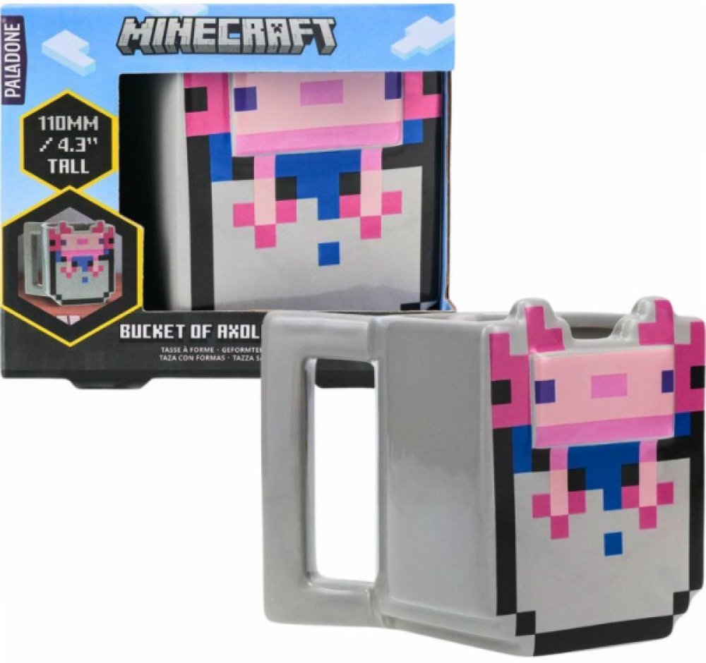 Užijte si rychlou přestávku na pití mezi herními sezeními s tímto hrnkem s grafikou vodního dráčka Axolotla ze hry Minecraft. Keramický hrnek má tvar kbelíku obs...