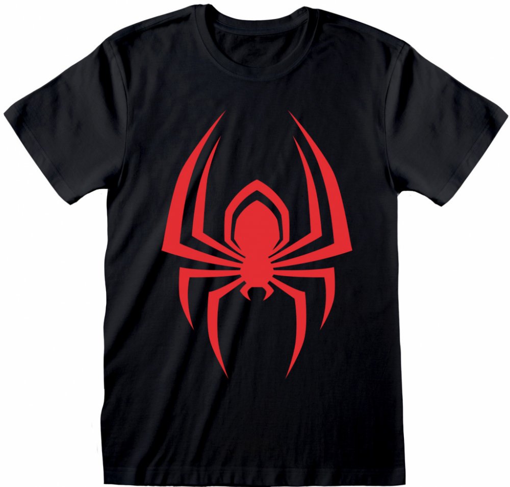 Atraktivní černé tričko s grafikou znaku pavouka od populárního superhrdiny Miles Morales, což je podoba na Spidermana. Tričko je vhodné pro všechny fanoušky.