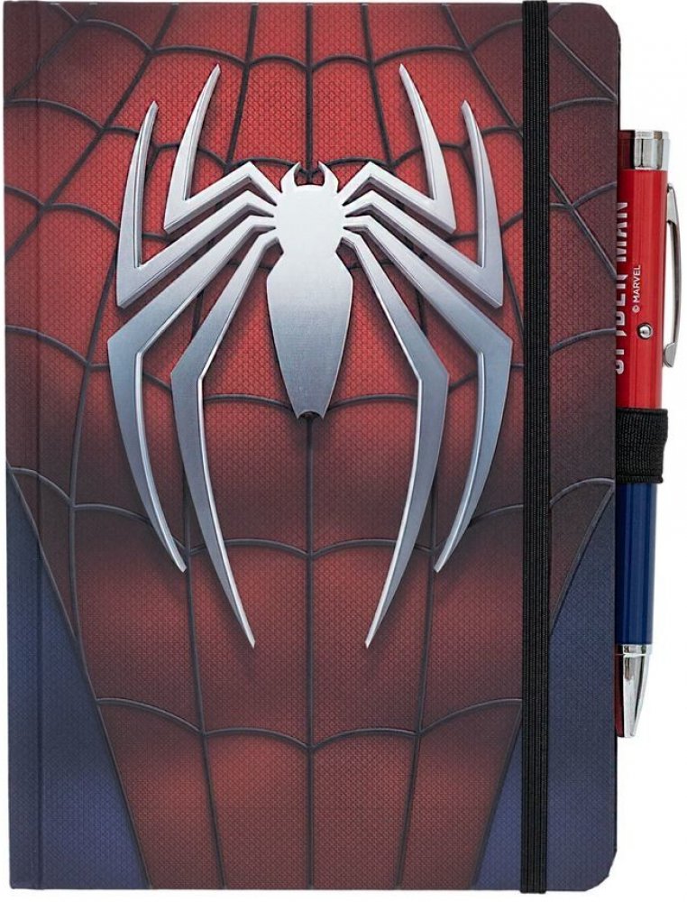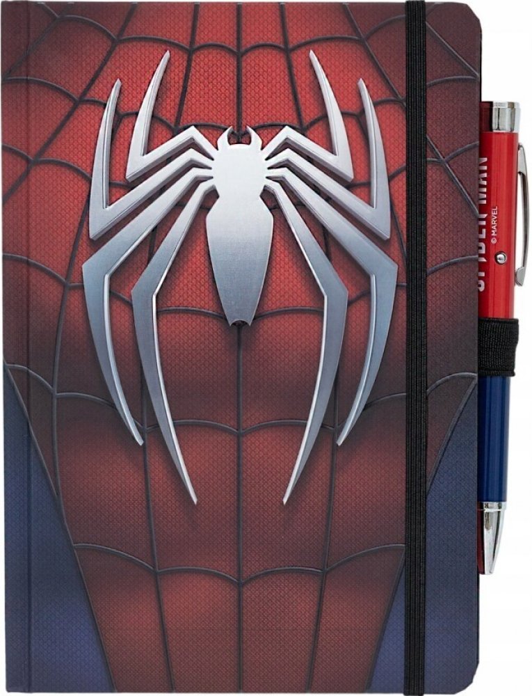 Zaznamenej své nápady hrdinsky s tímto Spider-Man zápisníkem! Tento zápisník s pevnou vazbou má matný povrch, zaoblené rohy, záložkovou stužku, elastické zavírání a praktickou kapsu. Obsahuje 92 listů (184 stran) bodkovaného papíru o gramáži 100 g/m², ideálního pro psaní nebo kreslení. Navíc součástí balení je pero, které po stisknutí tlačítka promítá obrázek. Pero je napájeno 4 bateriemi AG3, které jsou součástí balení.