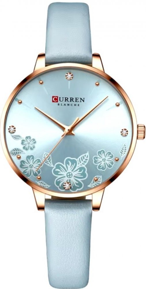 Dámské hodinky Curren Blume představují dokonalou kombinaci elegance a ženskosti. Ciferník zdobí jemné květinové vzory a třpytivé zirkony, které dodávají hodinkám luxusní vzhled. Řemínek z kvalitní ekologické kůže poskytuje pohodlí při nošení a zároveň oživuje celkový design. Ideální pro každodenní nošení i speciální příležitosti, tyto hodinky jsou nepřehlédnutelným módním doplňkem, který podtrhne vaši jedinečnost.