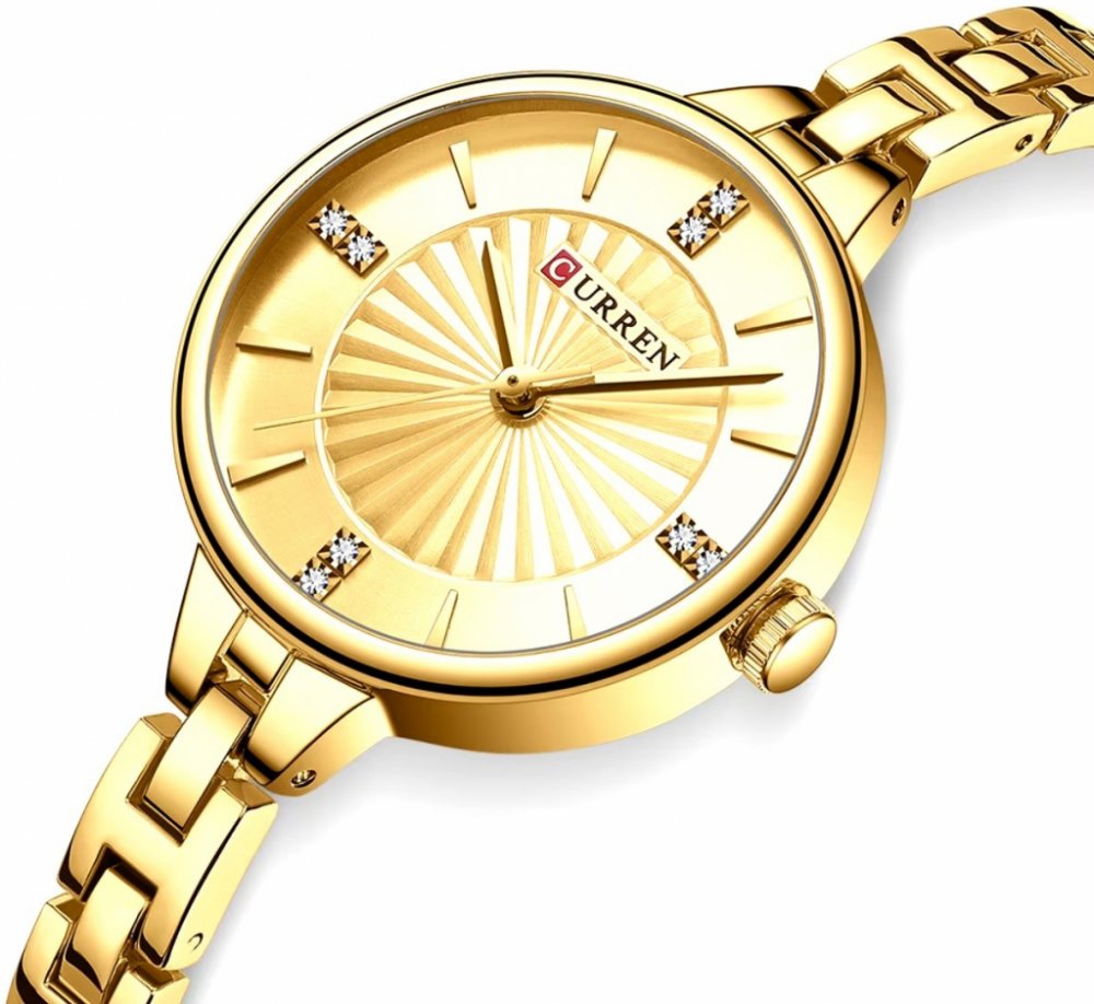 Curren analogové ocel dámské ocel 19 cm zirkony kulaté zlatá zlatá 0.6 cm