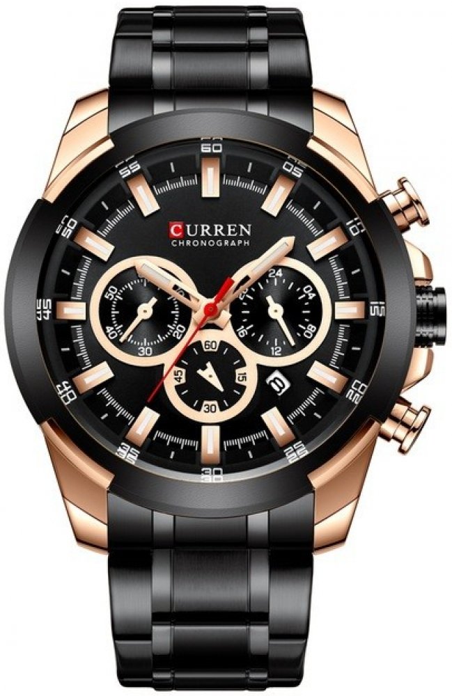 Pánske Hodinky CURREN Finn Pánske Hodinky CURREN Finn. Módní hodinky, které se hodí nejen na neformální události, ale také na různé obchodní setkání, společenské akce a pod. Svojím provedením a kvalitou zaručujete ochranu. Součástí hodinek je chronograf a kalendář. Hodinkám ve tmě svítí ručičky. Specifikace: Velikost ciferníku: 4,8cm Délka: max. 24cm Šířka řemínku: 2,1cm Barva: Černá Voděodolnost: hodinky jsou jen vlhkotěsné, neměli by přijet do styku s tekoucí vodou. Na hodinky poškozené vodou se nevztahuje záruka. Materiál: Nerezová ocel