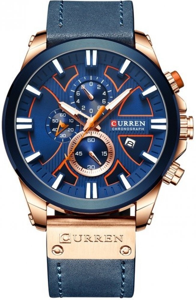 Pánske Hodinky CURREN Ford Pánske Hodinky CURREN Ford. Módní hodinky, které se hodí nejen na neformální události, ale také na různé obchodní setkání, společenské akce a pod. Svojím provedením a kvalitou zaručujete ochranu. Součástí hodinek je chronograf a kalendář. Hodinkám ve tmě svítí ručičky. Specifikace: Velikost ciferníku: 4,6cm Délka: max. 24cm Šířka řemínku: 2,3cm Barva: Modrá Voděodolnost: hodinky jsou jen vlhkotěsné, neměli by přijet do styku s tekoucí vodou. Na hodinky poškozené vodou se nevztahuje záruka. Materiál: Nerezová ocel a kožený remínek