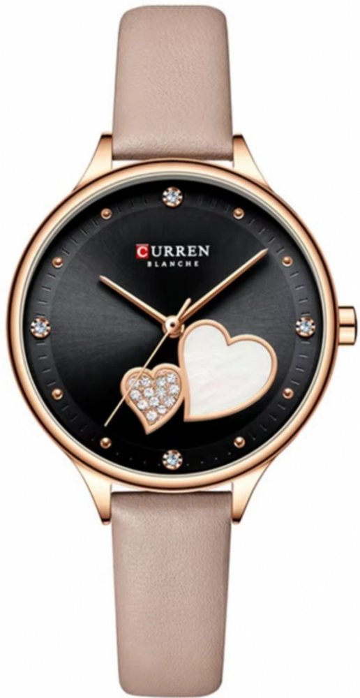 Dámské hodinky Curren Hearts s motivem srdcí jsou symbolem lásky a elegance. Ciferník je zvýrazněn dvěma srdcemi, z nichž jedno je zdobeno třpytivými křišťály, zatímco druhé vyniká perleťovým leskem. Hodinky s jemným řemínkem z ekologické kůže, který zaručuje pohodlné nošení a stylový vzhled. Ideální pro romantické večery nebo každodenní použití, tyto hodinky vyzařují neodolatelný šarm.