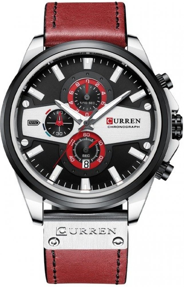 Curren analogové kůže sportovní pánské ocel kulaté červená černá s luminiscencí na přezku 2.4 cm na ruku bez číslic stříbrná ocel pevná 3 s dočasným svícením (luminiscence/LED) bez chytrých funkcí