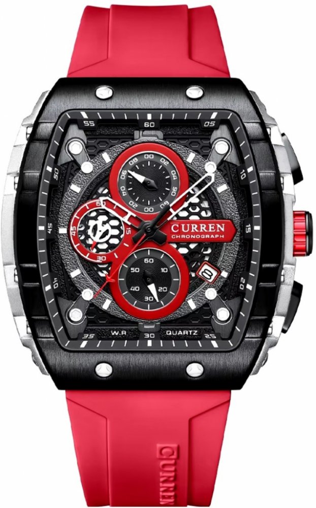 Curren analogové silikon ocel 30.0 m bateriové minerální sportovní pánské 24 cm bateriové - quartz bez osazení obdélníkové červená černá 2 cm pro běžné použití (30–50 m) s dočasným svícením (luminiscence/LED) s nenáročnou údržbou (quartz) bez chytrých funkcí na ruku bez číslic pevná ocel 3 s luminiscencí