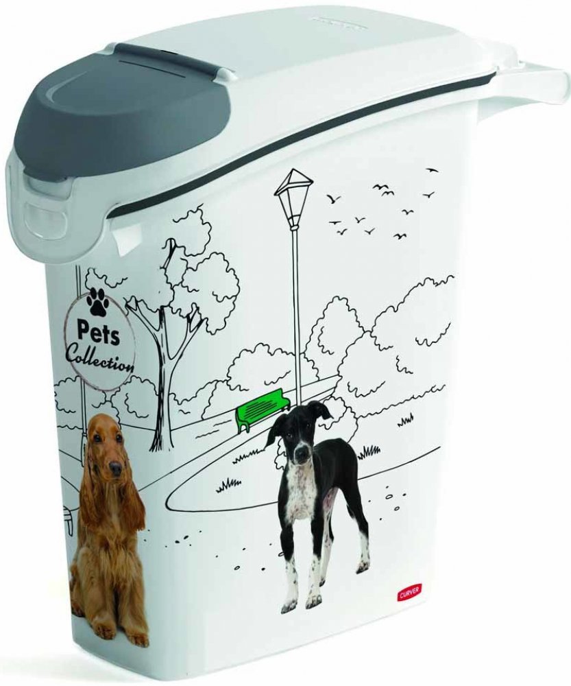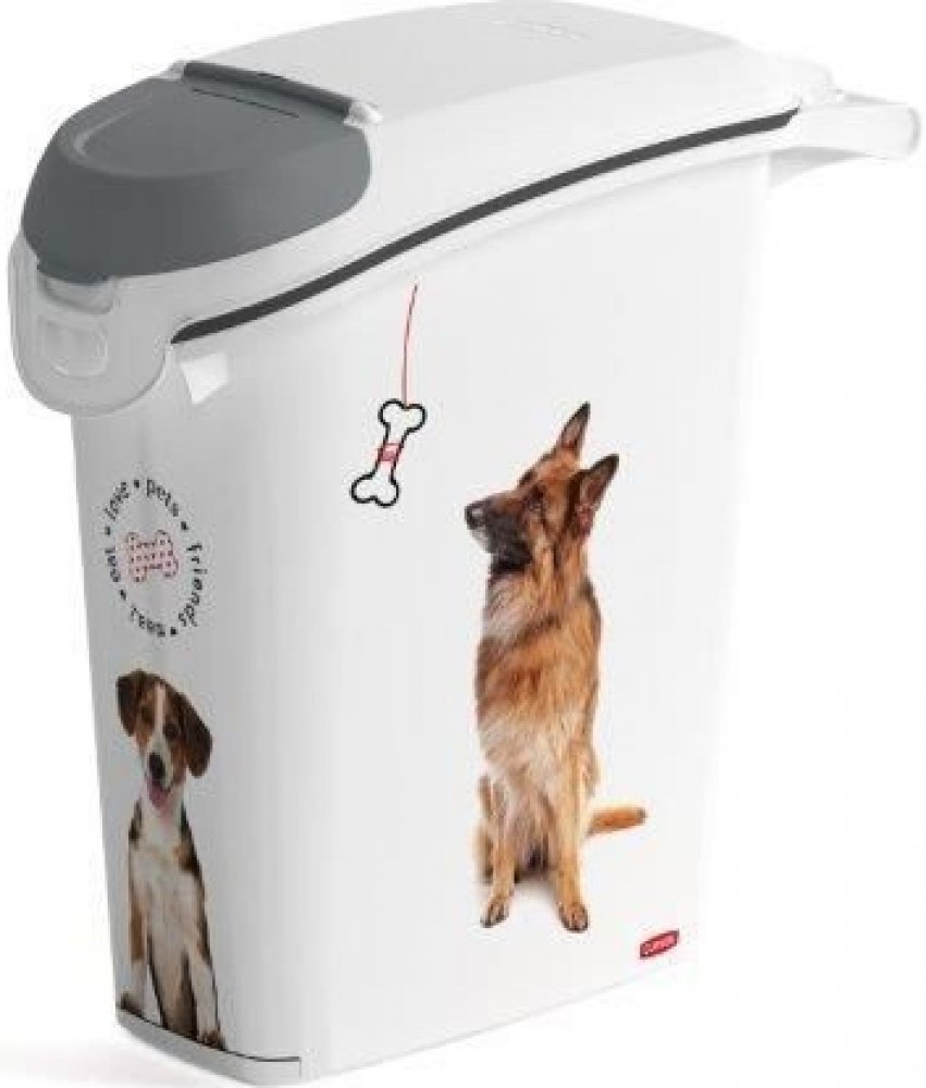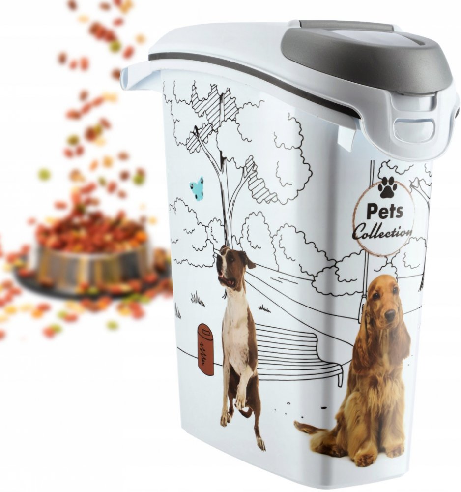 Praktický box na suché krmivo perfektně těsní, díky čemuž efektivně zabraňuje úniku pachu a cirkulaci vzduchu uvnitř kontejneru, kdy představuje naprosto dokonalou volbu pro uložení krmiva a granulí do hmotnosti až 10 kg. Suché krmivo brání tvorbě zubního kamene a tím také zápachu z úst, takže představuje ideální řešení pro zdravou výživu psů bez ohledu na plemeno. Hermetické uzavření kontejneru udrží krmivo čerstvé po delší dobu, jelikož nedochází k jeho oxidaci, takže se v něm uchová potřebná dávka vitamínů a dalších prospěšných živin pro vaše čtyřnohé mazlíčky. Krmivu zůstane původní barva, chuť i aroma, takže si vaši zvířecí miláčkové pošmáknou, i když budete dlouho v práci či na dovolené. Kontejner má speciální víko s důmyslným designem pro snadné plnění, které lze otevírat 2 způsoby. Součástí je také vnitřní stupnice pro přesné dávkování, které tak bude vždy odpovídat správnému množství. Kompaktní rozměry a odolná rukojeť umožní snadné přenášení zásobníku, takže jej bez obtíží přemístí důchodci i větší děti. Psí motiv zaručeně potěší každého pejskaře, kdy je na zásobníku vyobrazený teriér a německý ovčák.