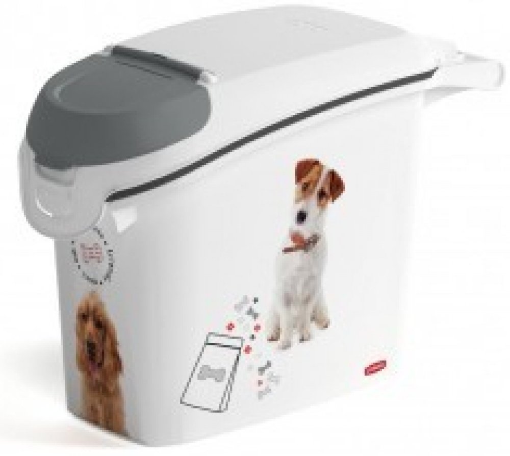 Zásobník díky speciálně navrženému, vysokému korpusu zavíranému na klapku umožňuje pohodlné dávkování krmiva. Disponuje také pohodlným držákem umožňujícím snadnější použití. Jde o dokonalou volbu pro uložení krmiva pro štěně. Velikost 6kg/15L.