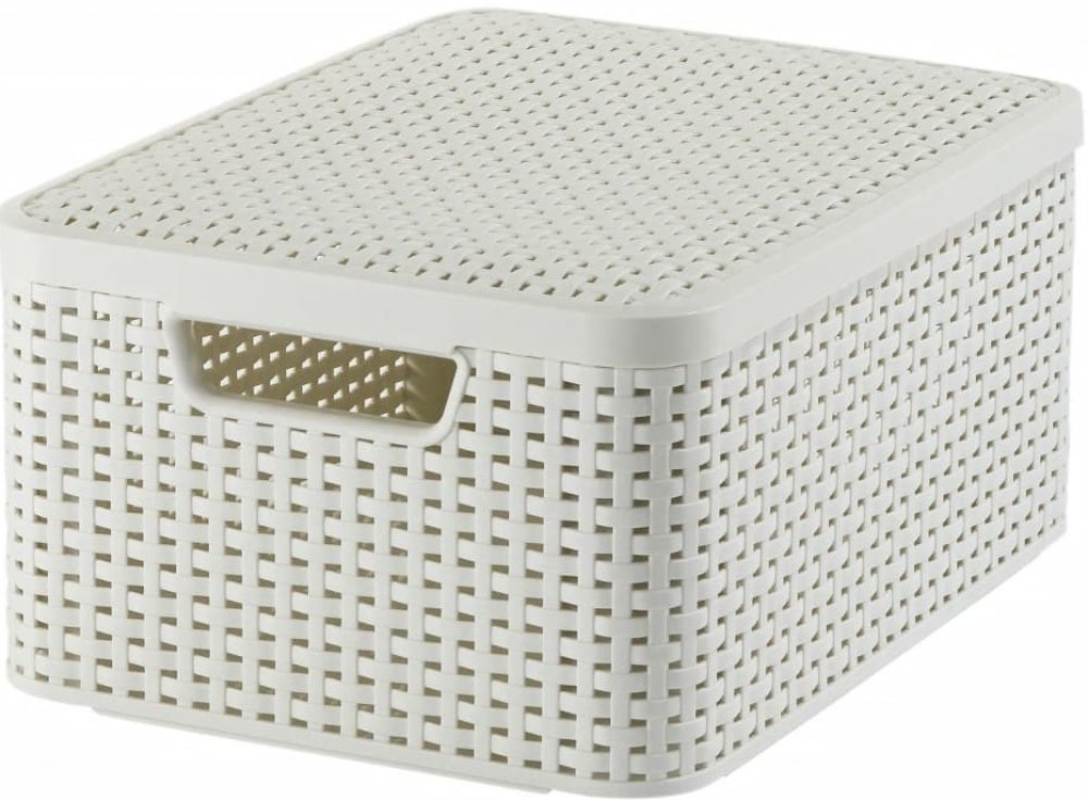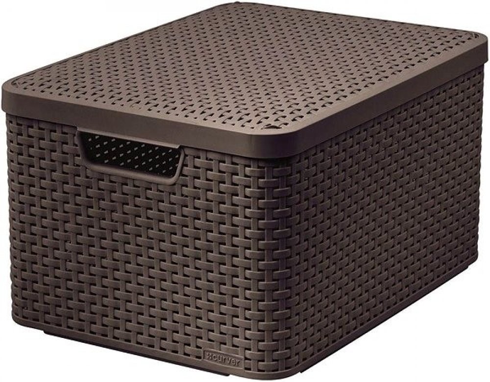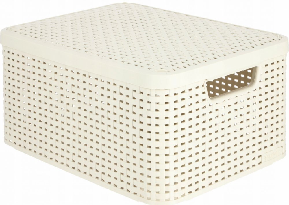 Přepravka má praktické víko, takže udrží vše perfektně uvnitř - navíc ji díky tomu můžete stohovat na sebe. Těsně pod víkem se na kratších stěnách nacházejí dvě díry, které jsou ideální pro přenášení. Praktický designově propracovaný box v imitaci ratanu Vám pomůže udržet pořádek doma, v dílně nebo třeba i na zahradě.