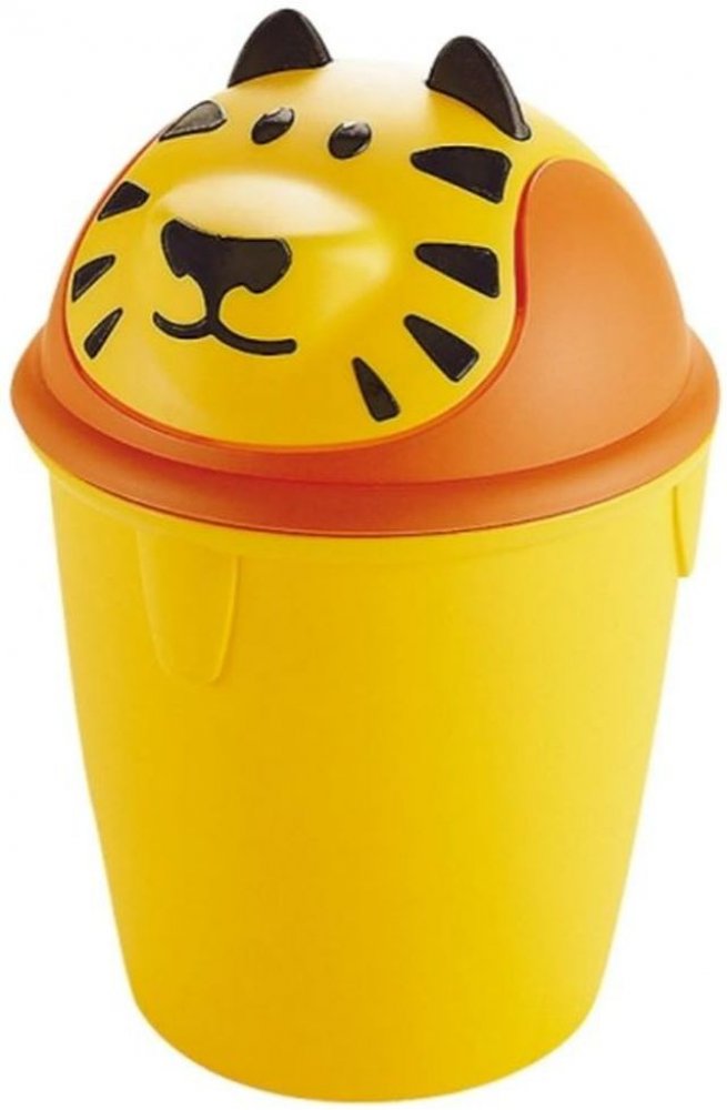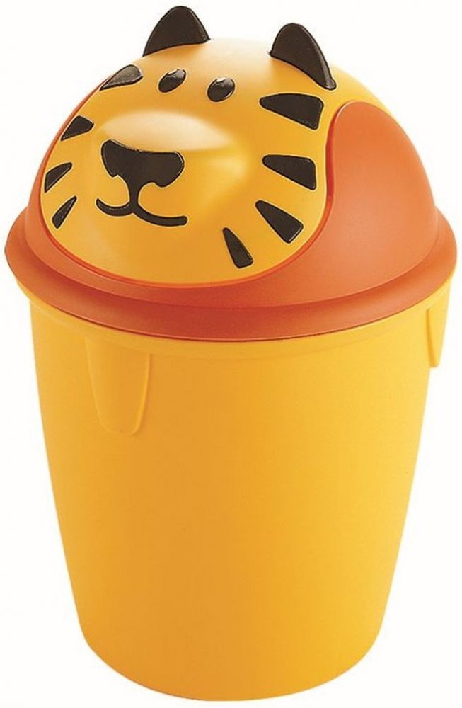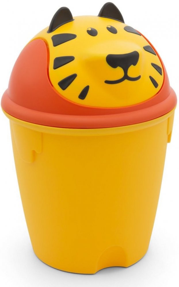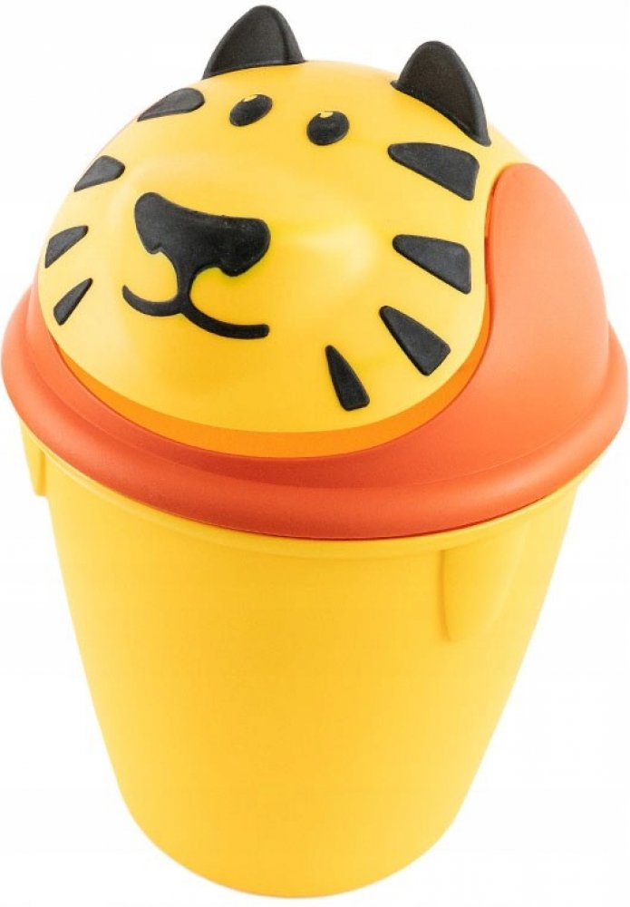 Praktický dětský odpadkový koš TIGER Curver v motivu žlutého tygra. Víko se otvírá zatlačením směrem dovnitř. Vhodný do dětského pokoje.