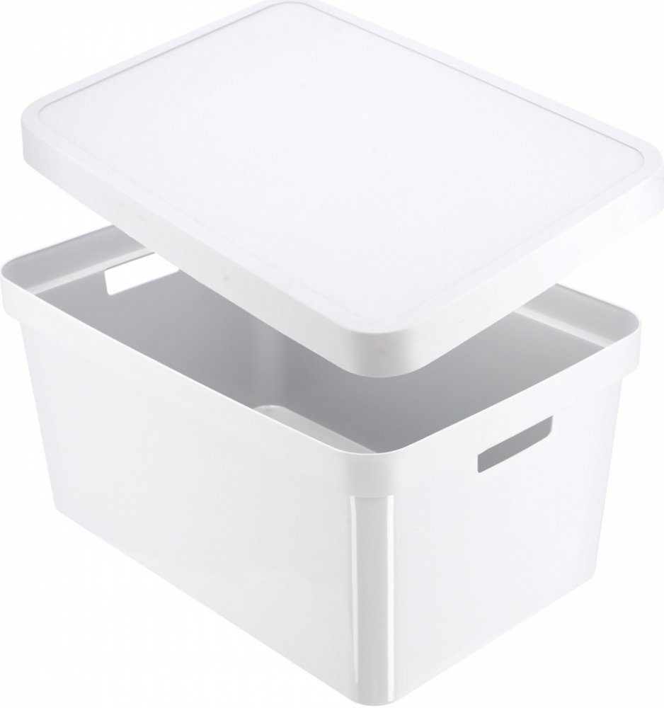 Praktický box s jednoduchými liniemi inspirovaný skandinávském stylu. Osvědčil se jak v koupelně, šatně, tak i v kuchyni. Úchyty byly vyrobeny tak, aby nezabíraly další místo. Díky tomu koše dokonale vyplňují prostor v regálech. Dostupný v několika barevných provedeních. Objem 45L.