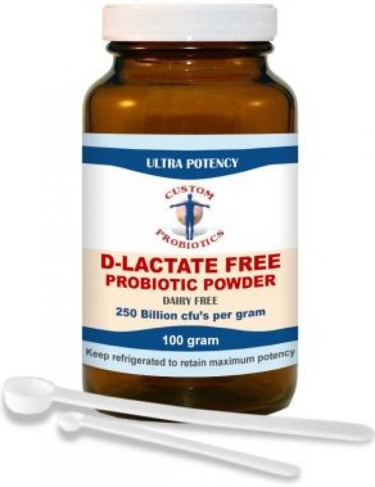 Multikmenová probiotika firmy Custom Probiotics, která neobsahují kmeny bakterií tvořící d-laktát - benefitní látka, která však může zejména citlivým jedincům dělat potíže. Probiotika bez d-laktátu jsou vhodná zejména pro osoby s atopickým ekzémem nebo histaminovou intolerancí.