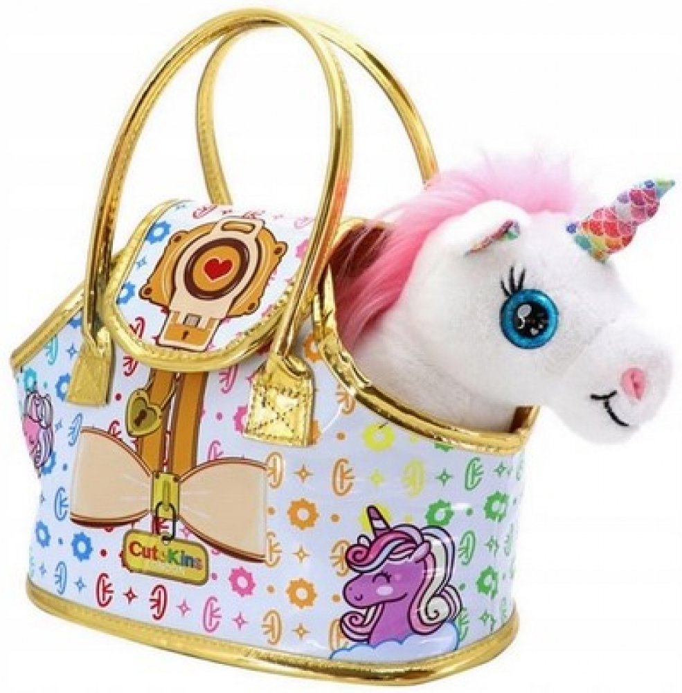 Plyšový jednorožec s módní kabelkou. Jednorožce můžete pohodlně nosit v kabelce.