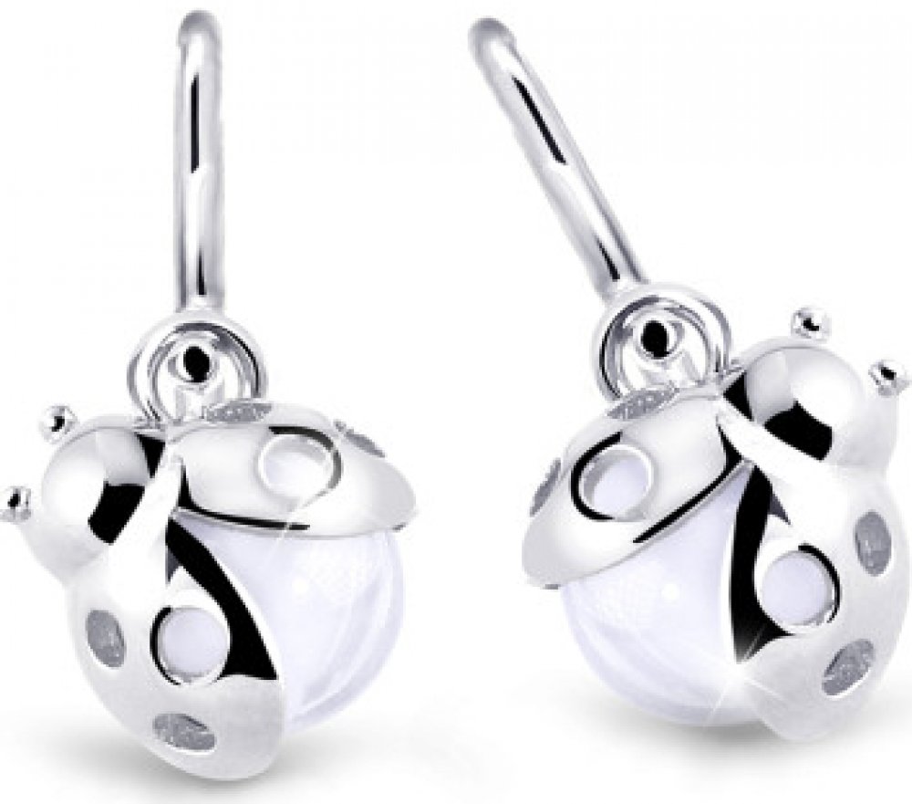 Dětské náušnice z bílého 14karátového zlata, v roztomilém designu berušek, zdobené čirým zirkonem.