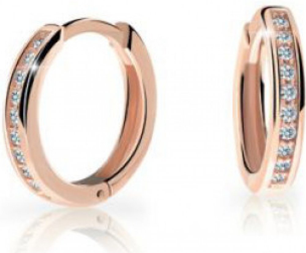Zlaté dětské náušnice Cutie z růžového 14 karátového zlata, zdobené čirými zirkony. Vnitřní průměr náušnice: 9 mm. Váha: 1,40g. TIP: Jak vybrat dětské náušnice? V případě, že potřebujete dřívější dodání, kontaktujte nás mailem nebo telefonicky a prověříme dostupnost přímo u dodavatele.