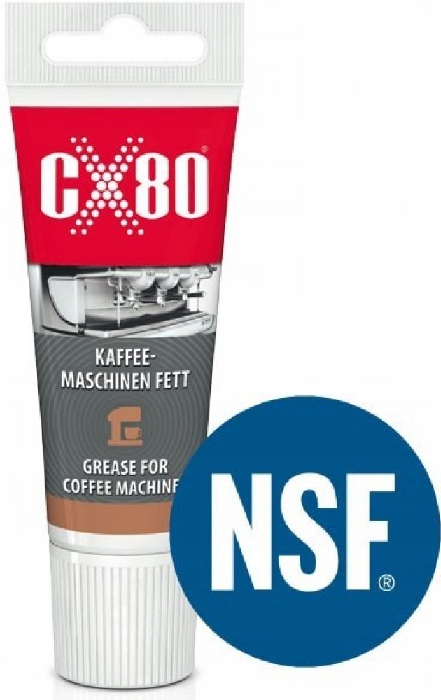 Pravidelná péče a o kvalitu komponentů vašeho kávovaru zajistí dlouhodobý a bezporuchový provoz. Mazání spařovací jednotky ve většině kávovarů je stejně důležité jako její pravidelné odvápňování nebo odstraňování kávových usazenin. Pouze ty nejlepší mazací prostředky zajišťují správnou trvanlivost a odolnost vůči teplotě nebo vodě. Kromě toho je velmi důležité mít potřebné hygienické atesty, které povolují dané mazivo pro použití v součástech, které přicházejí do styku s potravinami. Mazivo pro kávovary CX80 získalo všechny potřebné atesty a může být použito ve všech tlakových kávovarech. Použitím maziva pro kávovary CX80 si můžete být jisti jeho trvanlivostí a bezpečností. Mazivo do kávovaru je zcela bezpečné pro všechny gumové a plastové díly.