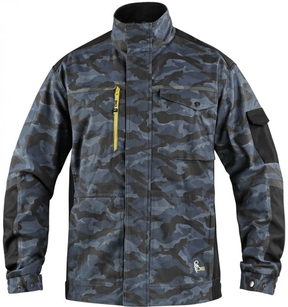 Pánská montérková, strečová blůza CANIS CXS STRETCH pánská maskáčová umožňující volný pohyb. Rukávy s nastavitelnou manžetou. Kapsička s klopou na levém rukávu. Ramena vyztužena 600D polyesterem.
