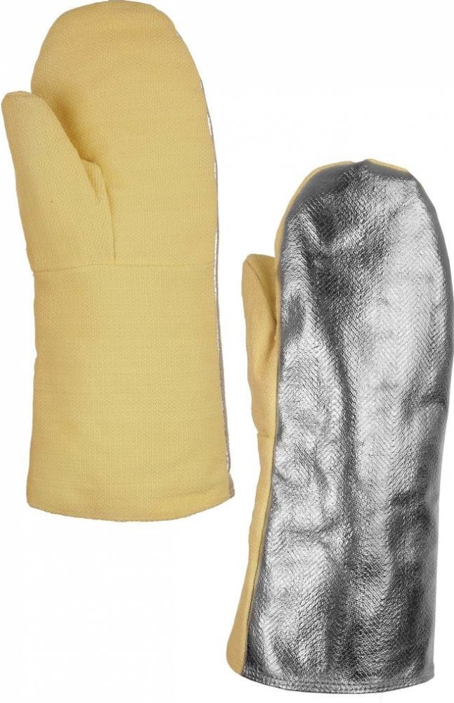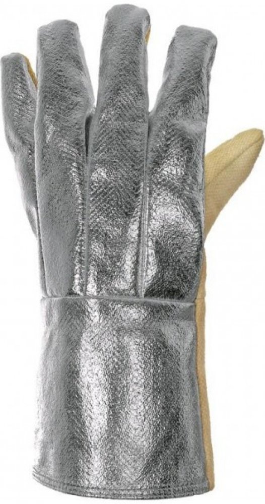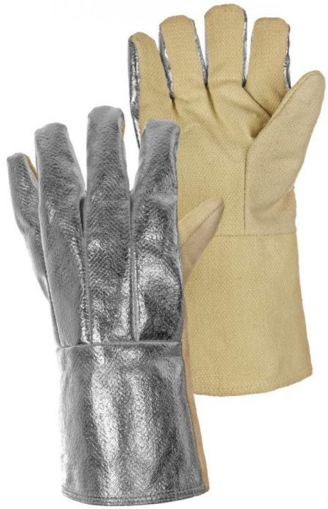 Tepelně odolné rukavice šité Kevlar® nití. Chrání před sálavým teplem a odstřikem taveniny. Ochrana do 500 °C. Délka rukavice: 42 cm. Doporučené použití: práce s horkými předměty a v prostředí se sálávým teplem. Odvětví: slévárny, hutní průmysl. Dlaň - aramidová tkanina, hřbet a manžeta - pokryty hl ...