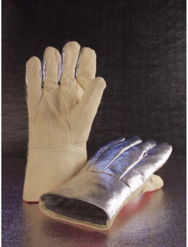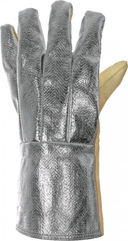 Tepelně odolné pětiprsté rukavice z odolné aramidové tkaniny šité kevlarovou nití, hřbet a manžety kryty reflexní aluminiovou fólií. Poskytují ochranu ochranu před sálavým teplem až do teploty 500 °C a postřikem taveninou. Doporučené jako svářečské rukavice a pro slévárenský a hutní průmysl.
