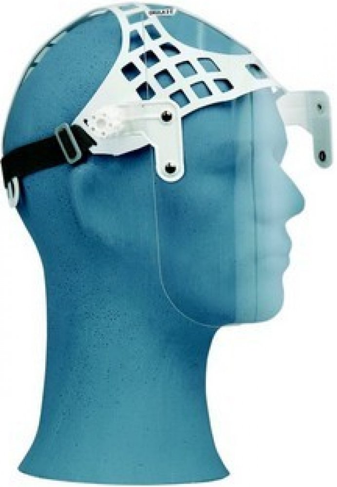 Typ štítu se speciálním náhlavním nosičem, díky kterému je nošení štítu pohodlné. Je určen k ochraně očí a obličeje, současně chrání dýchací ústrojí před přímým vdechnutím pevných částic a kapénkové infekce. Umožňuje současné použití brýlí či roušky.