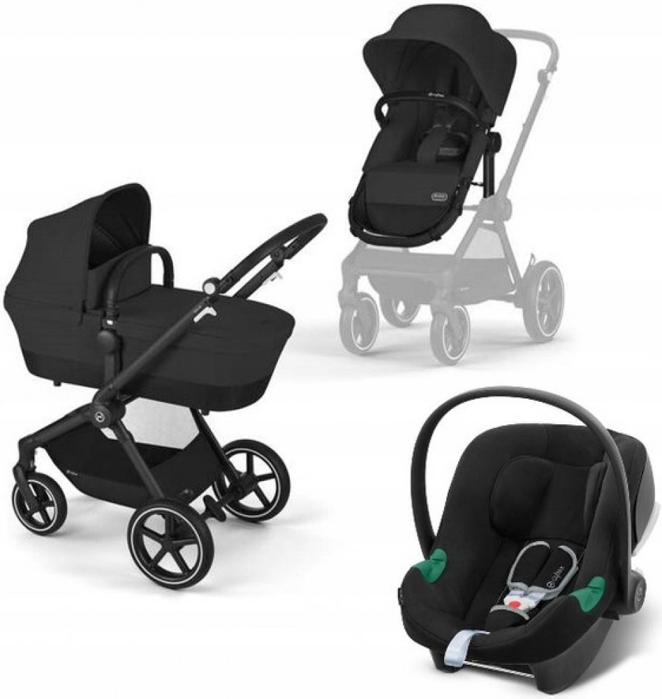 Cybex Eos Basic 3v1 Kombinovaný Rám Černý + Adaptéry + Autosedačka Aton B2 I-Size Moon Black 2023