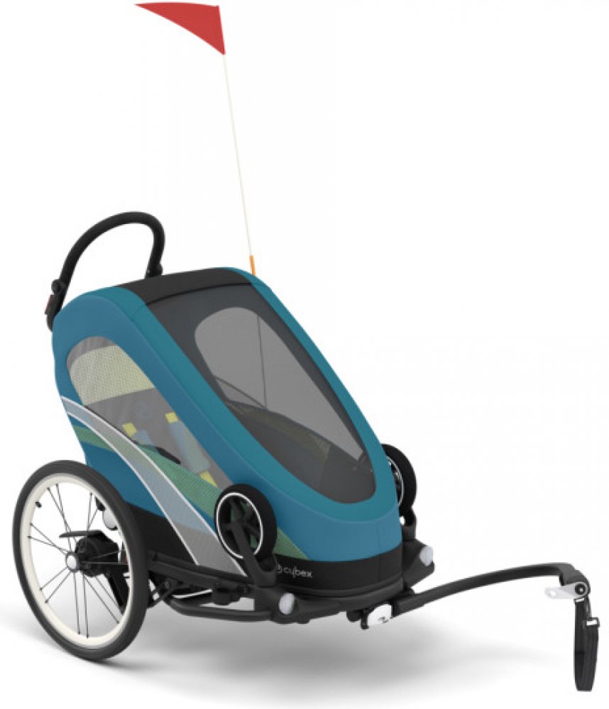 Udělejte si čas na aktivní odpočinek od své každodenní rutiny a vezměte svého malého parťáka s sebou na projížďku. Se ZENO Bike můžete podnikat nová dobrodružství každý den. Kočárek CYBEX Zeno Bike Set obsahuje: rám + seatpack (látkový potah kabiny) + přední a zadní kola + cyklistickou oj + bezpečnostní praporek + bezpečnostní zadní světlo Přijeďte do města, objevte nové trasy nebo si hrajte na průvodce po celý den. Se ZENO Bike může váš prcek prozkoumat město a okolní přírodu bezpečným a zábavným způsobem. Použijte produkt jako cyklistický přívěs a vychutnejte si svobodu volné silnice. Když chcete zpomalit tempo, přeměňte přívěs na kočárek a v mžiku se můžete procházet po chodníku. Nic se nevyrovná zážitku ukázat svému dítěti velký rozsáhlý svět. V bodech: 2v1 - přívěs za kolo i kočárek v jednom vhodný pro děti od 6 měsíců do přibližně 4 let převážené dítě musí mít alespoň 6 měsíců a musí být schopno samo sedět ve vzpřímené poloze při jízdě na kole musí být dítě dost staré na to, aby mohlo nosit přilbu a sedět vzpřímeně bez dozoru lze použít i za elektrokolo nepřesahující rychlost jízdy 25 km/h integrovaný úložný prostor v kitu kompaktní rozměry ve složeném stavu během několika sekund přední otočná kolečka měkké zadní odpružení a pneumatiky huštěné vzduchem cyklistická oj a přední otočná kolečka jsou itegrované v kabině kočárku přeměna z jednoho režimu do druhého je možná rychle, bez nutnosti používat nářadí ultra pohodlná polstrovaná sportovní sedačka výškově nastavitelná rukojeť z bezpečnostních důvodů musí být rukojeť sklopená dopředu v režimu vozíku za kolo šikovné prostory na ukládání předmětů potahy lze prát v pračce při 30 °C