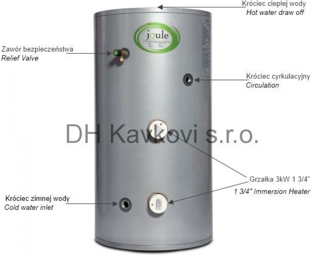 bojler je vybaven elektrickým ohřívačem 3 kW a pojistným ventilem