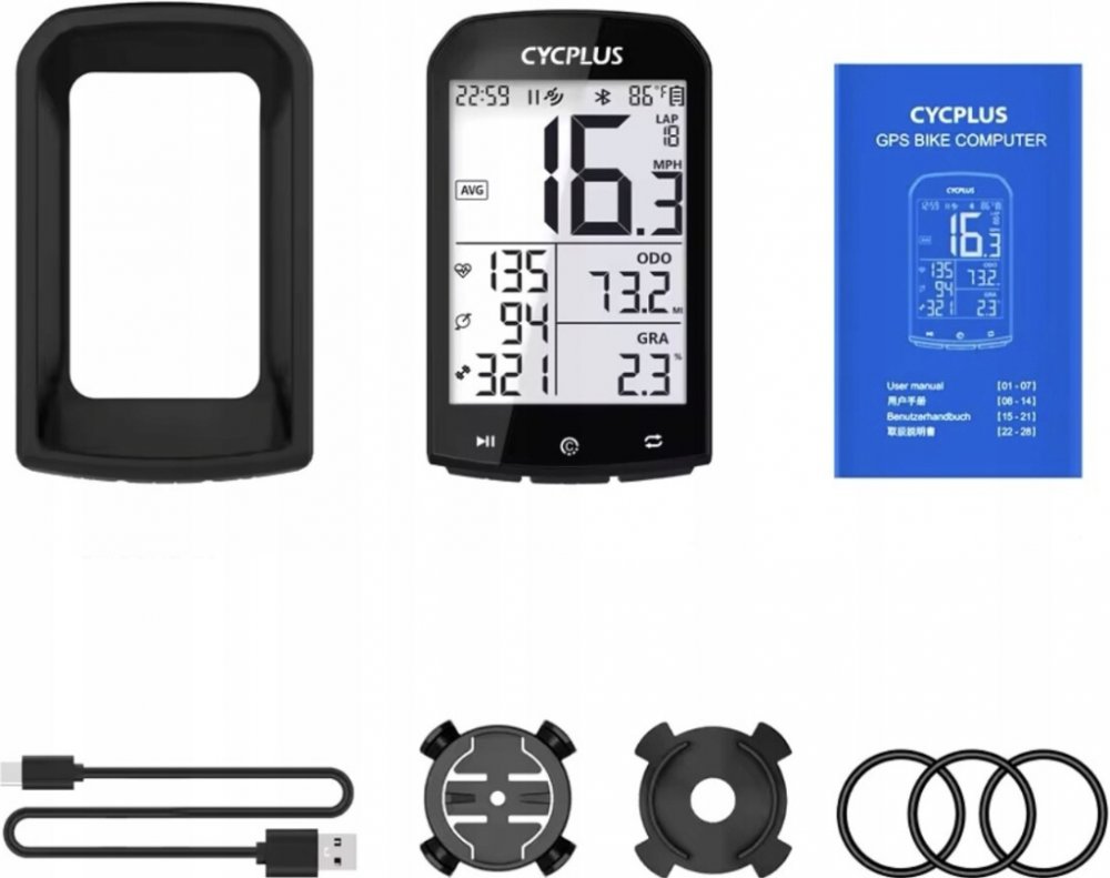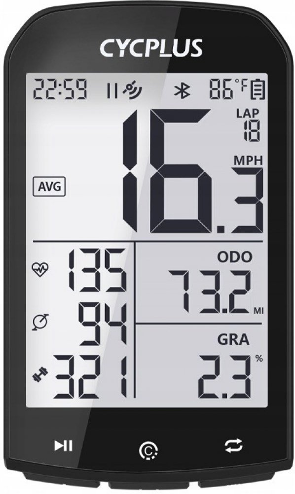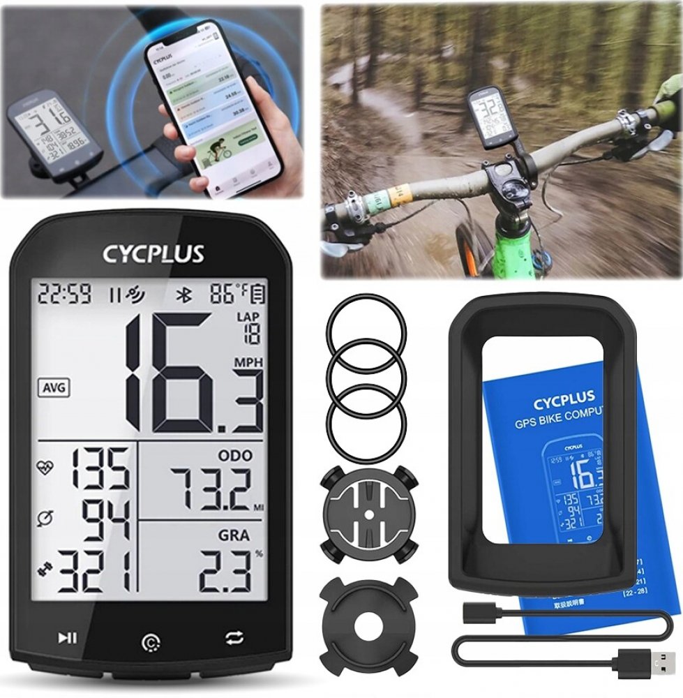Cyklocomputer Cycplus M1 poskytuje mnoho užitečných informací o vaší jízdě. Můžete pohodlně kontrolovat údaje, jako je teplota, čas, vzdálenost, délka jízdy, rychlost jízdy, sklon terénu a mnoho dalších. K dispozici je také možnost synchronizace dat s aplikací prostřednictvím Bluetooth.