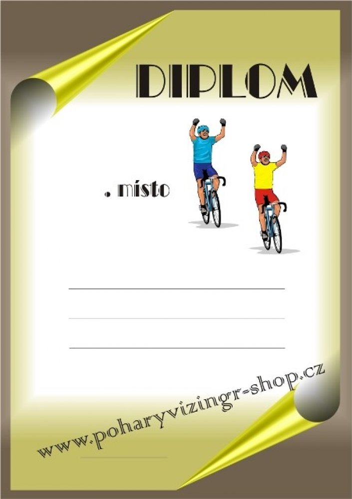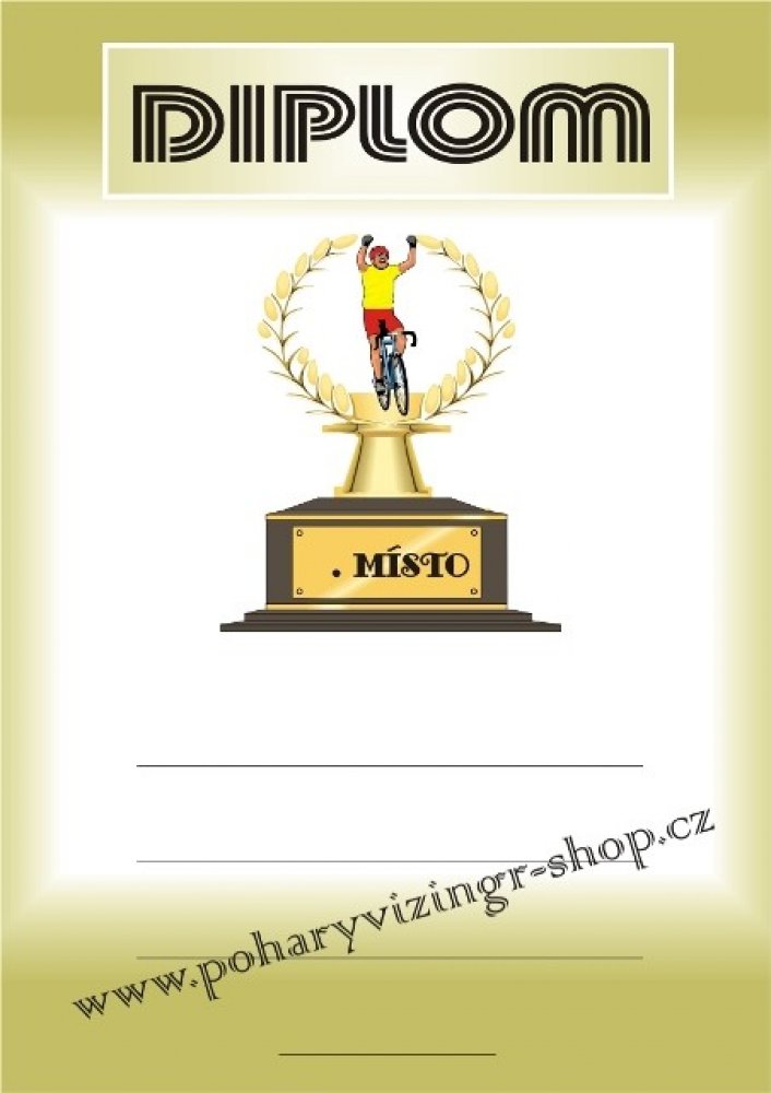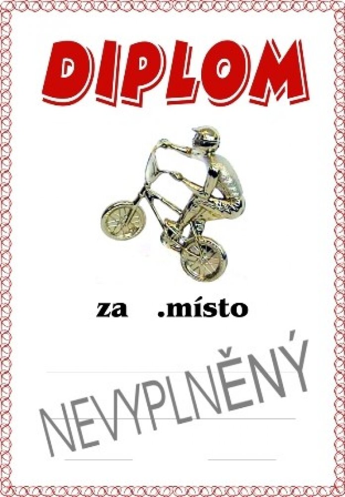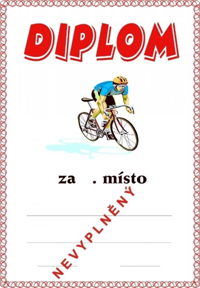 Diplom formátu A4 (250 g). Objednáváte NEVYPLNĚNÉ (BEZ TEXTU) diplomy a chcete si je vyplňovat vlastní tiskárnou - napište do textu BEZ LINEK. Objednáváte diplomy VYPLNĚNÉ - krátké a stejné texty napište zde. Požadujete-li dlouhé nebo různorodé texty napište je prosím ve svém PC a vložte soubor (např.PDF,Corel,WORD,Exel apod.) před uzavřením objednávky jako přílohu. Do diplomu lze vložit i Vaše logo, foto apod. - pro realizaci je vhodné konzultovat e-mailem v jakém formátu požadované logo máte k dispozici.Vyplněné diplomy(četná uznání, pamětní listy apod.) Vám i zalaminujeme - vhodné domluvit na prodejně. -