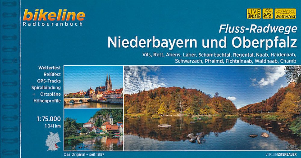 Cykloprůvodce vydavatelství Esterbauer. Obsahuje popis 14ti výletů podél řek (vhodné tedy i například pro rodiny s dětmi) v oblasti dolního Bavorska a Horní Falce o celkové délce 1041 km. V rámci nichž naleznete popis cesty, výškový profil, náročnost a stručnou charakteristiku trasy, výchozí a konečný bod výletu, délku trasy. Zdůrazněny jsou zajímavosti, které cestou potkáte, kontakty na ubytování a občerstvení a také je zmíněna stručná historie oblasti. Každá etapa je zakreslena do několika přehledných map v měřítku 1:75 000 (poměr map a textu je půl na půl) a doplněna o ilustrační barevné fotografie. Kroužková vazba, formát 226x120 mm, 180 stran v laminované úpravě. Německy. Vydání 2019.