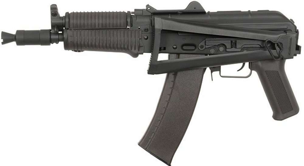 CM.045 je dobře známá kopie ruské zbraně AKS-74U, která je oblíbená mezi hráči airsoftu díky skvělému poměru kvality a ceny. Hlavní části zbraně, jako jsou tělo, kryt závěru, pažba, páka pojistky, lučík spouště, záchyt zásobníku a plynové potrubí, jsou vyrobeny z oceli. Další díly, jako například vnější hlaveň, závěr, základna mušky a hledí, jsou ze slitin kovů. Přední předpažbí, pistolová rukojeť...
