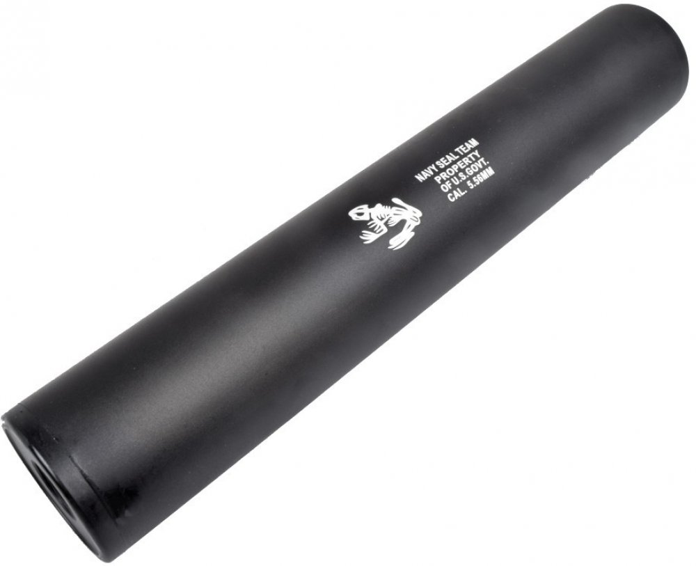 Tělo tlumiče je vyrobeno z odolného, ale lehkého hliníku, takže nezatěžuje hlaveň zbraně a zároveň nabízí dlouhou životnost. Uvnitř je vybaven zvuk pohlcujícím materiálem, který přispívá k částečnému tlumení zvuku výstřelů a přidává na realistickém efektu při hře.