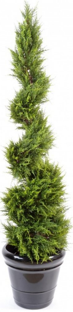 Okrasný umělý jehličnan CYPŘIŠ JUNIPERUS SPIRAL FINE má celkovou výšku vč. kotvícího květináče 160cm, na šírku měří max. 55cm. Spirálovitý umělý cypřiš tvoří dřevěný kmen a zelené jehličí dvou odstínů z PE. Umělý jehličnan dodáváme v kotvícím květináči z PVC, odlišném od obrázku. Kotvící květináč je určen k vložení do většího dekoračního květináče. Hmotnost umělého cypřiše vhodného i do exteriéru: 9,97kg.Luxusní umělý strom CYPŘIŠ JUNIPERUS SPIRAL FINE, 160cm je od předního evropského výrobce, který se zaměřuje jen na produkty špičkové kvality. Pro výrobu jsou použity materiály a komponenty v TOP kvalitě. Vše je doladěno do posledního detailu jako u živých rostlin. Díky tomu jde o dokonalou repliku, která je jen těžko rozeznatelná od živé rostliny.Umělé stromy jsou skvělou alternativou živých stromů všude tam kde nemohou růst, nebo kde je péče o ně nemožná. Umělé stromy mají navíc řadu výhod. Nikdy nezvadnou a budou vypadat stále skvěle a čerstvě, neopadávají z nich listy o odpadá pak pravidelný úklid. Umělé stromy nemusíte zalévat, doplňovat, zeminu ani hnojiva. Kromě času tak ušetříte i peníze. Umělé stromy neprodukují žádný odpad a nároky na údržbu jsou prakticky nulové. Stačí je jen občas otřít vlhkým hadříkem. Navíc mohou tyto stromy být i v těžko dostupných prostorách, tmavých místech bez sluníčka, nebo zakouřených interiérech. Finální podobu lze snadno do jisté míry upravit a nehrozí ani nežádoucí růst. Umělé stromy nemohou sloužit jako líhniště hmyzu ani nezpůsobují alergickou rekci. Umělé rostliny v interiérech pozitivně působí na člověka a navozuje pocity pohody, navíc podporují kreativitu. Nové materiály zaručují že stromy vypadají opravdu skvěle jako živé. U většiny umělých stromů je navíc použit přírodní kmen který podtrhává autentičnost rostliny.