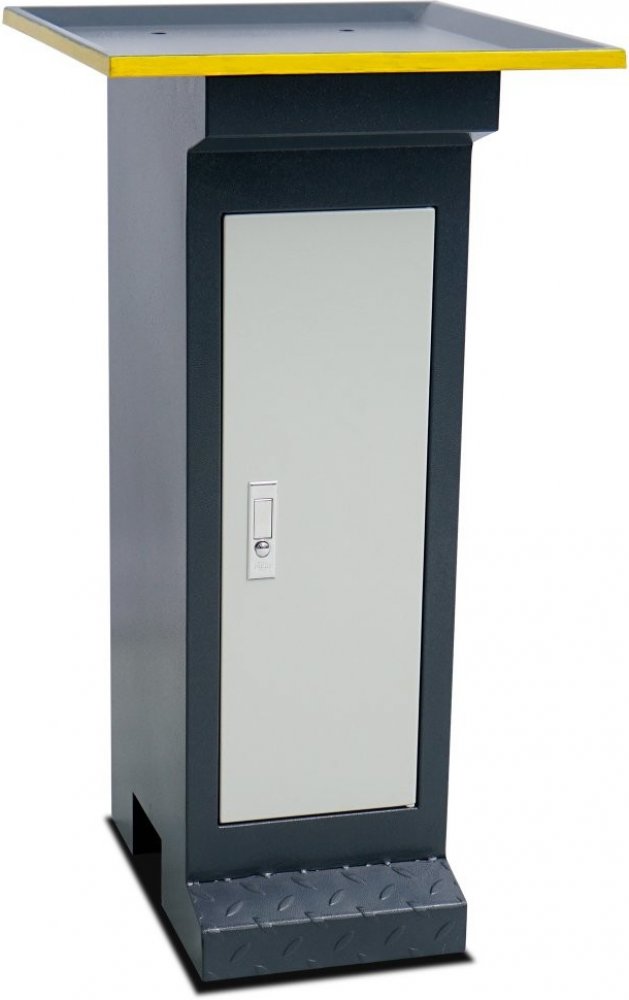 Podstavec má úložnou skřínku s policemi.