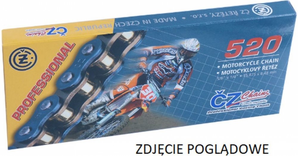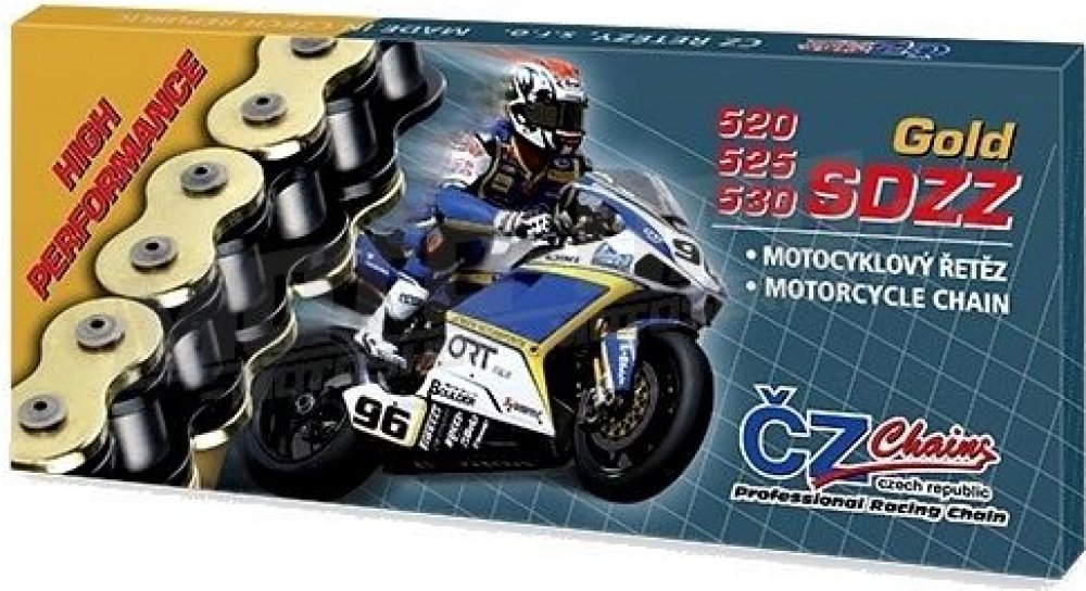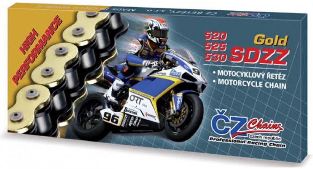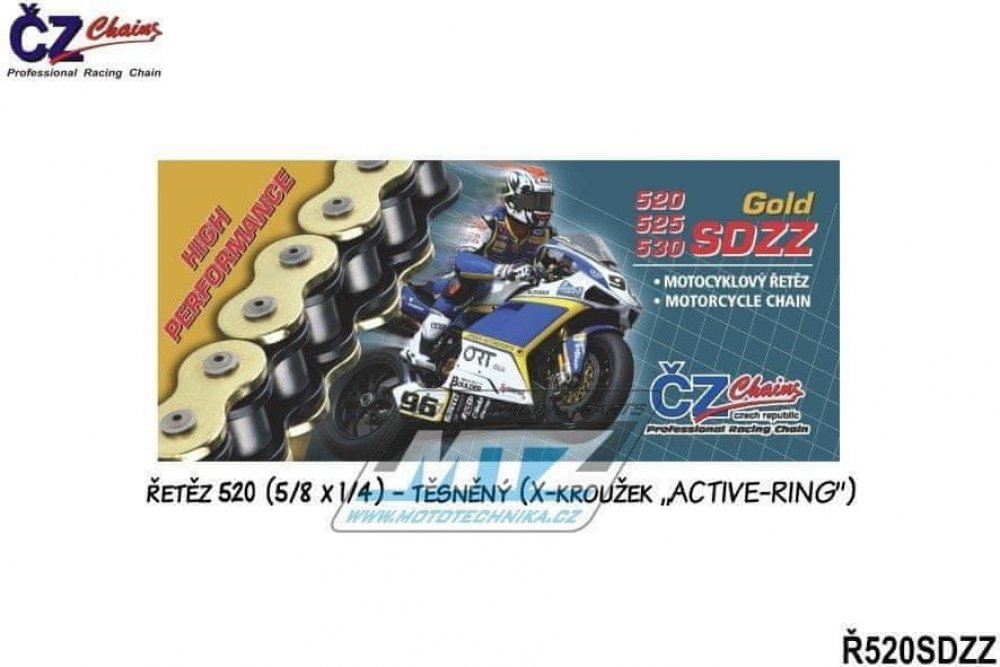 řetěz 520SDZZ, ČZ - ČR (barva zlatá, 116 článků vč. nýtovací spojky RIVET)Rozteč: 15,875 mm