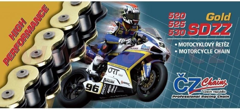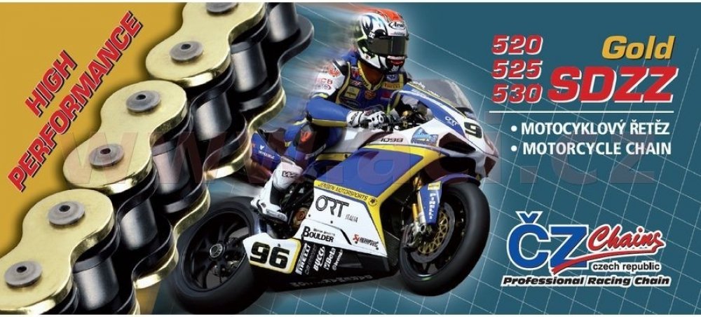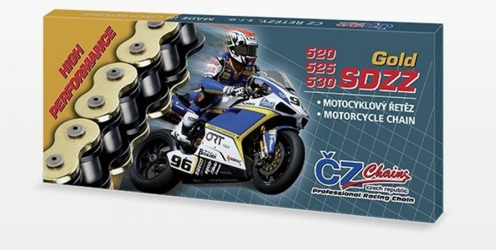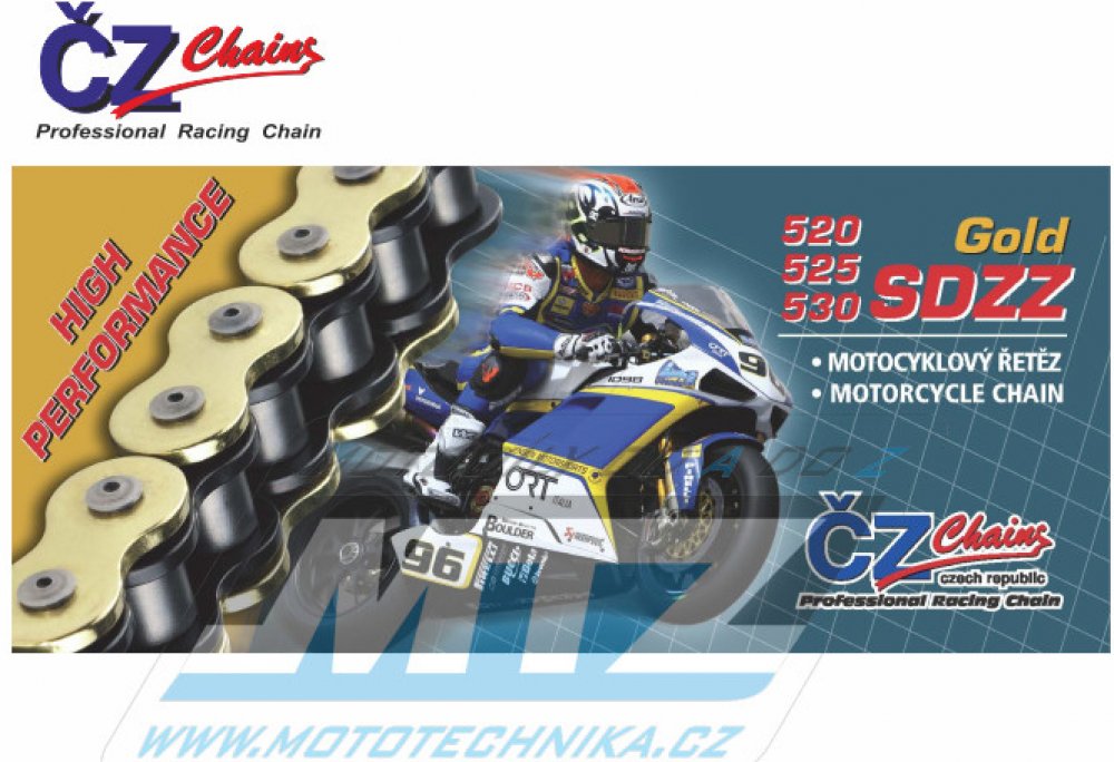 řetěz 530SDZZ, ČZ - ČR (barva zlatá, 110 článků vč. nýtovací spojky RIVET)Rozteč: 15,875 mm
