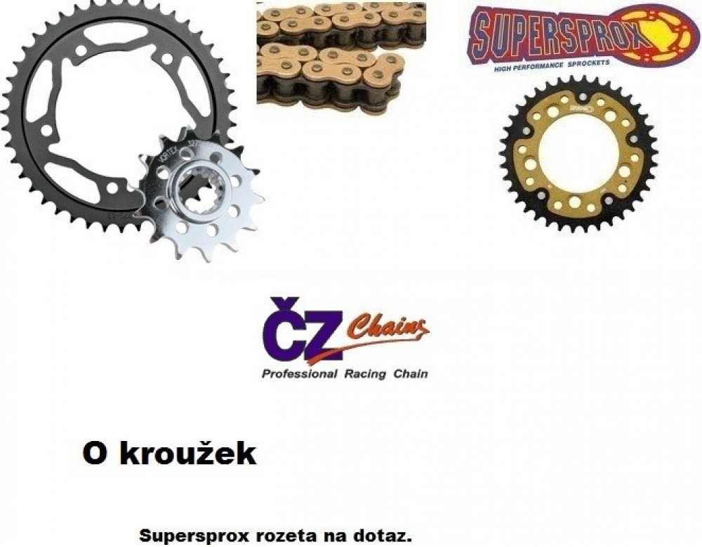 Řetězová sada s ČZ X-ring, APRILIA 1000 RSV Mille R (04-09) rok výroby 2004-2009, Řetěz ČZ 525 DZX, X-ring, počet článků 106, kolečko 704-16 zubů, rozeta 0702-40 zubů. Sada obsahuje:
