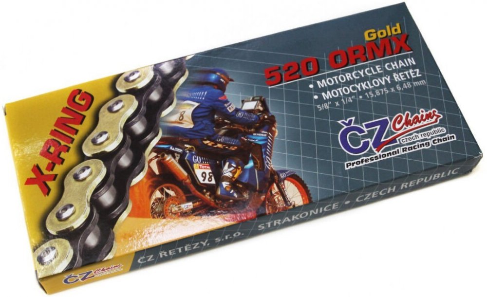 ČZ 520 SDZZ je vysokopevnostní řetěz vyvíjený pro stroje s velkým výkonem - z hlediska bezpečnosti používejte pouze nýtovací spojku. Rozebíratelnou spojku u tohoto řetězu používejte jen pro motocykly s menším výkonem –...