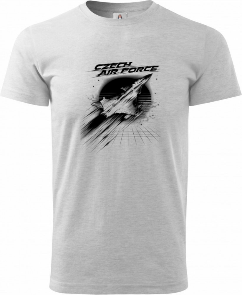 Czech Air Force, černý tisk. Dynamický motiv s vojenskou stíhačkou v ikonickém retro stylu 80. let. Ideální volba pro piloty a nebo fanoušky českého letectva.