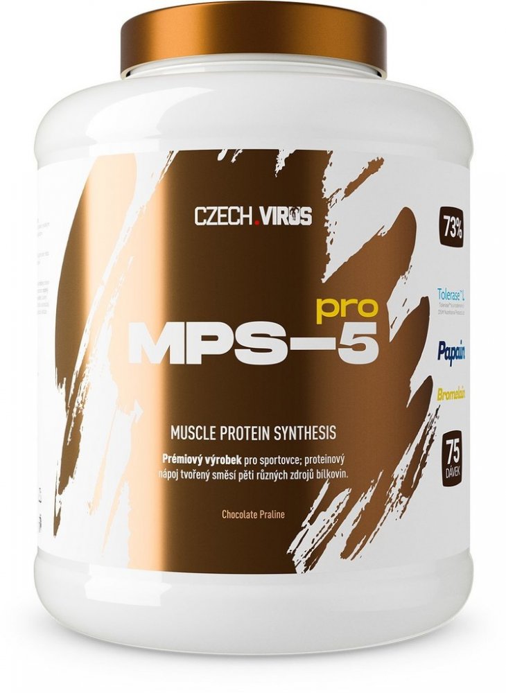 MPS-5 PRO je vysoce kvalitní protein složený z 5-ti různých zdrojů bílkovin. Největší část tvoří syrovátkový koncentrát zpracovaný metodou CFM (Cross-Flow Microfiltration) a nativního mléčného proteinu (zdroj micelárního kaseinu). Zbytek tvoří směs CFM syrovátkového izolátu, hydrolyzovaný (naštěpený) syrovátkový koncentrát a vaječný albumin. Složení reflektuje aktuální studie pro nejideálnější slo...