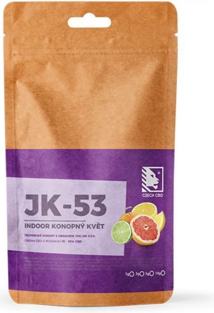 Charakteristika: Konopný indoor květ JK-53 je náš vlastní hybrid, který pěstujeme na farmě v jižních Čechách. Díky vysokému obsahu CBD a CBG převyšuje spoustu běžně dostupných odrůd, proto se tyto květy staly velmi rychle populární mezi našimi zákazníky. Varianta indoor ohromí svou hutnou, plnou silou a nabije energií na celý den. Nic na světě vás už nevyvede z rovnováhy.