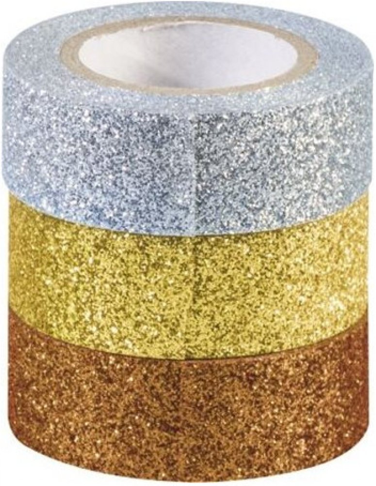 Produkt "3 ks Páska 1,5cm x 3m Glitr měď/zlatá/ stříbrná" spadá do žánru Papírnictví a školní potřeby.