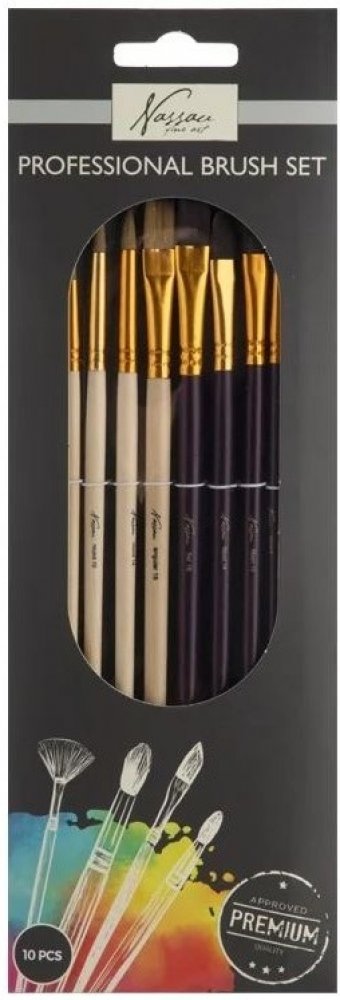 Sada profesionálních syntetických štětců vhodných na akryl, akvarel a temperu nebo kvaš. Sada obsahuje 1ks plochý č.18; 1ks plochý zkosený č.18; 2ks ploché kočičí jazýček č.10, 14 a 6ks kulatých č. 2×6, 2×8, 10, 14. Doporučení: Po použití štětce vyčistěte teplou vodou a mýdlem. Potom uhlaďte a vytvarujte štětiny. Štětce vždy skladujte štětinami nahoru.