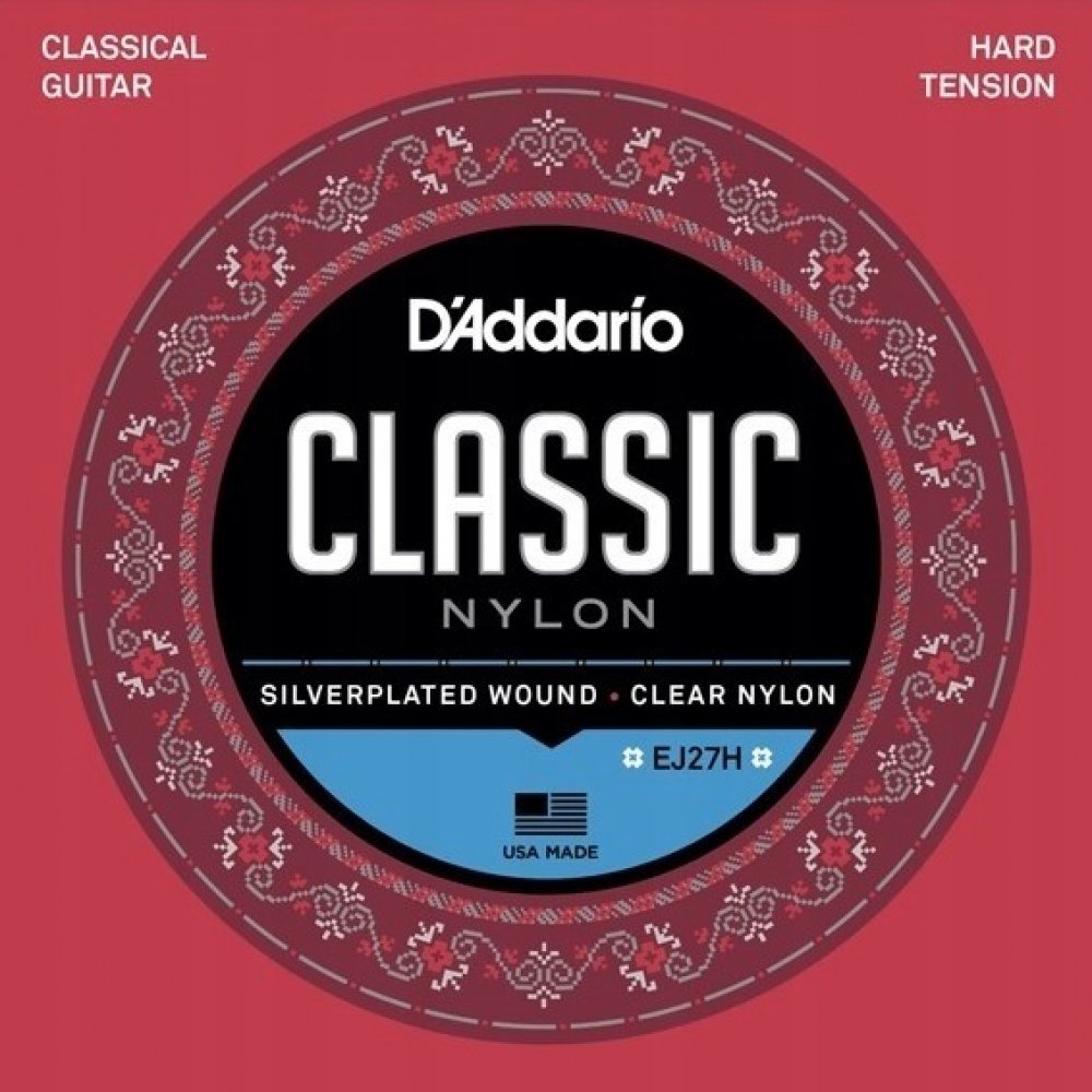 Nylonové struny pro klasickou kytaru Nylonové struny z řady D’Addario Classics jsou právem naším největším hitem a bestsellerem. Tradiční kombinace postříbřené mědi a čirého nylonu jim dodává vřelý, vyvážený zvuk, kteří ocení začínající hráči i profesionální kytaristé. Pokud hledáte zlatou střední cestu mezi kvalitou a cenovou dostupností, tahle klasika od proslulé společnosti D’Addario vás jistě potěší! Tato sada nabízí vyšší pnutí (High Tension), ideální pro hráče, kteří hledají silný, asertivní tón, který vynikne na jakémkoliv koncertním pódiu.