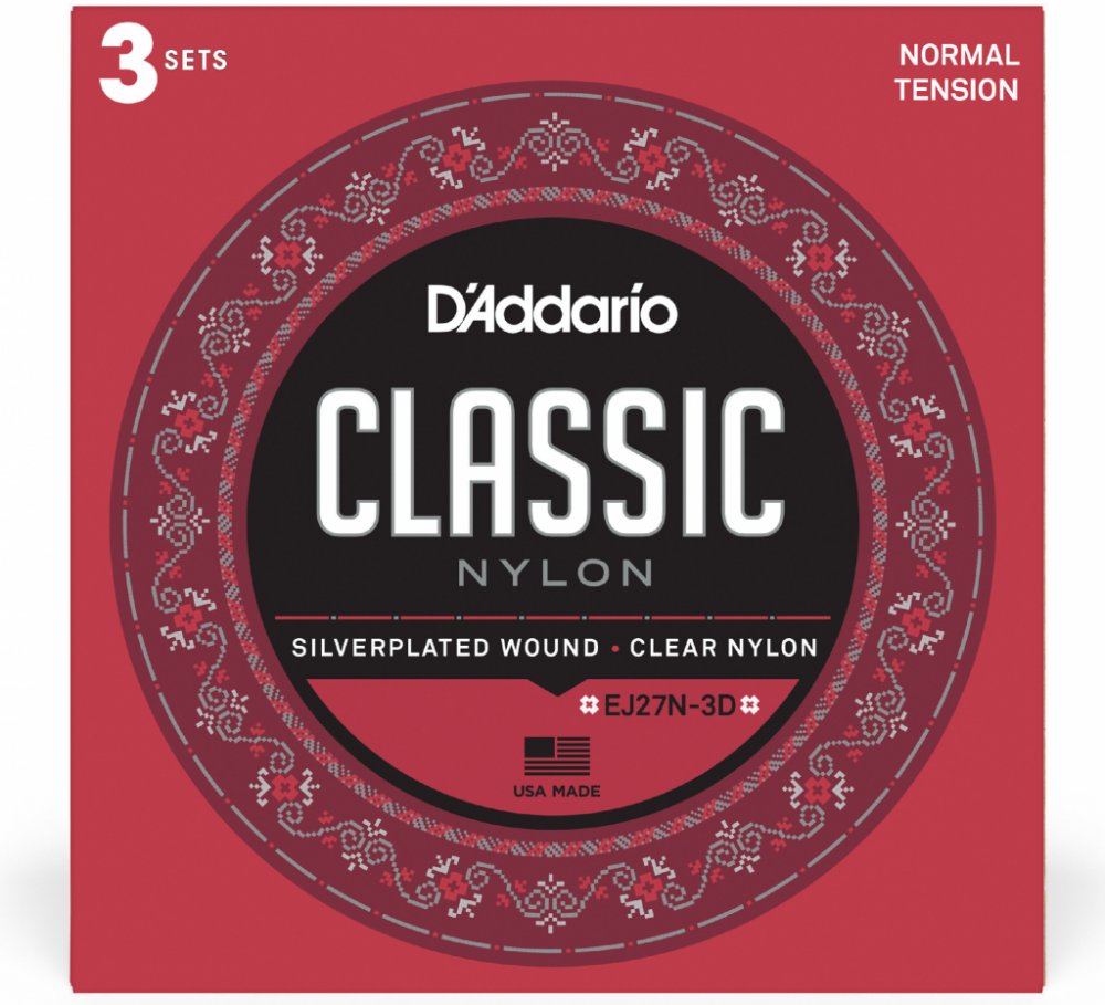 Balení tří sad strun. Tento speciální set obsahuje 3 balení strun pro klasickou kytaru. Sada nylonových strun pro klasickou kytaru. 3 basové struny jsou vinuté vrstvou postříbřené mědi, výškové struny jsou vyhotoveny z čistého průhledného nylonu. Sada není vybavena kulovým zakončením a pro její uchycení je nutné struny nasadit pomocí klasického vázání. Samozřejmostí je balení, které je šetrné k ži...