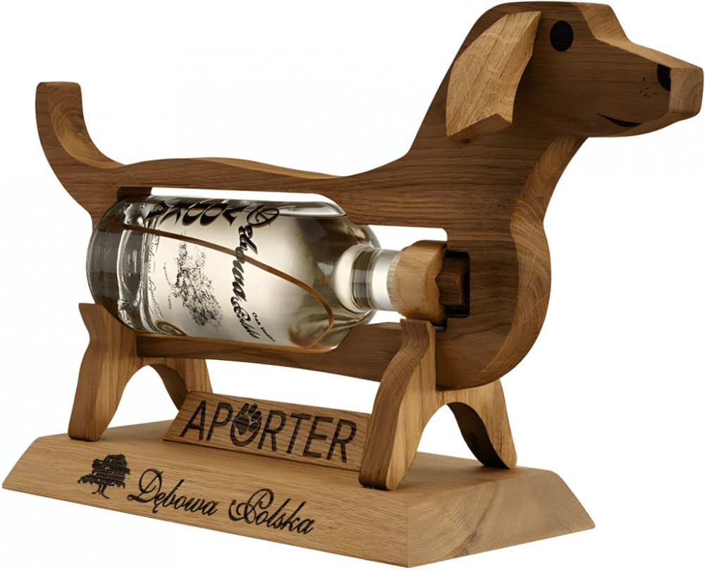 Díky tomuto milému dárkovému balení od značky Dębowa můžete svým přátelům darovat originální dárek! Láhev je umístěna v dřevěném stojanu ve tvaru psa.