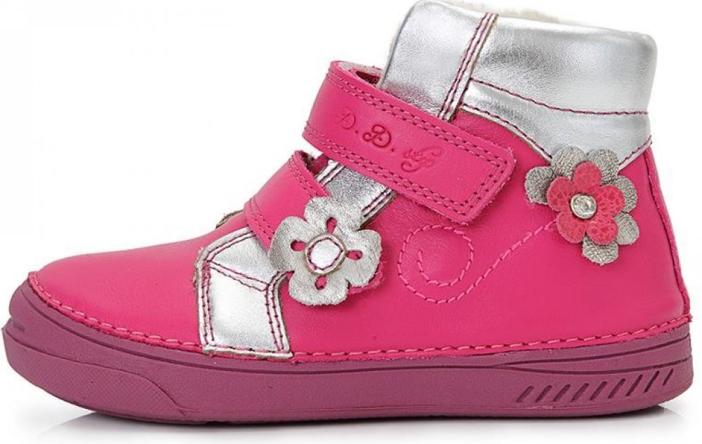 Dívčí zimní obuv D.D.step má kožený svršek v zářivě růžovém odstínu v kombinaci s módním stříbrným provedením. Svršek dále zdobí dvě ozdobné kytičky. Zapínání je praktické, na dva suché zipy. Uvnitř je zateplení z umělého kožíšku, který také vykukuje na horním okraji. Samozřejmostí je pohodlná neklouzavá flexibilní podešev a vyjímatelná stélka, kterou případně snadno vysušíte. D.D.step používá ...