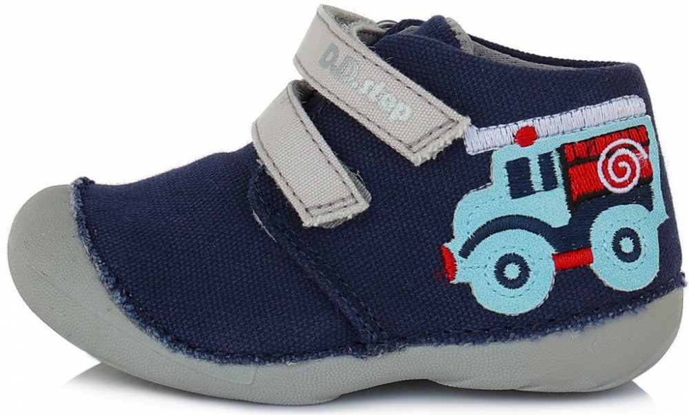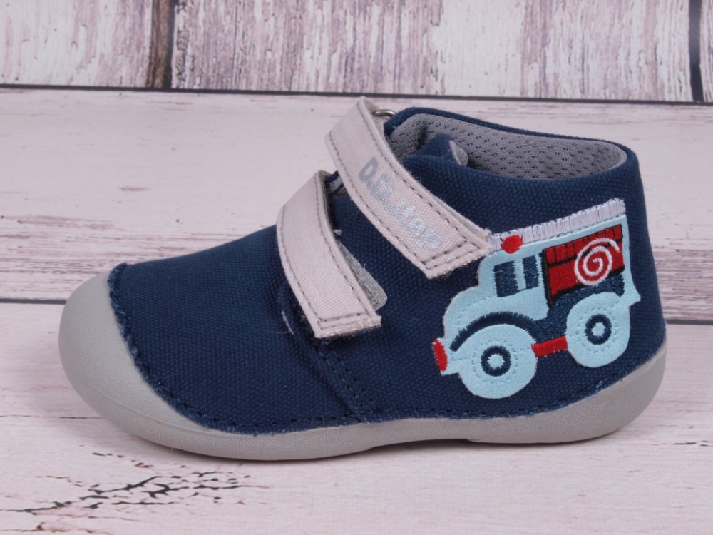 Dětské kotníkové textilní lehké vycházkové botky s krásně ohebnou podešví, s anatomicky tvarovanou koženou stélkou a mírně zpevněným opatkem, okopová špička ochrání botičky před okopáním, střední střih, vhodné pro střední nožičky. Tyto botičky jsou brány i jako barefoot kompromis. Zapínání na suchý zip.