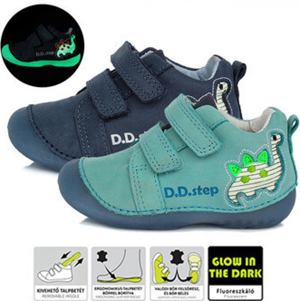 Vysoce prodyšná, kotníčková obuv z kvalitních hovězích a vepřových usní s vyjímatelnou absorpční stélkou a pevnějším opatkem.Velmi lehká, měkká podešev z přírodní pryže.Použité materiály zaručují flexibilitu a přizpůsobivost tvaru nožičky dítěte, prodyšnost obuvi a absenci toxických látek. Speciální stélky tlumící nárazy.Konstrukce obuvi je navržena tak, aby co nejvíce umožňovala přirozený růst dětské nožičky a pohyb chodidla při chůzi a běhu - zakulacená špice.Ohebné neklouzavé podešve s nízkou hmotností.Obuv D.D.Step se vyznačuje vysokým pohodlím a komfortem pro děti, které ji nosí, a přitom zcela podporuje zdravý vývoj dětské nožičky. Obuv D.D.Step se také vyznačuje atraktivním a nadčasovým vzhledem.Boty D.D.Step jsou vyráběny z měkkých kůží, jsou používány neklouzavé ohebné podešve a kožené stélky. Konstrukce obuvi je navržena tak, aby co nejméně bránila zdravému vývoji dětské nohy.